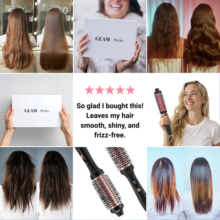 See how GLAM-styles revolutionises your hair routine! With our 3 in 1 innovative thermal styling brush, you’ll achieve sleek, salon-quality results and silky-smooth hair in minutes. Discover the stunning transformations and effortless glam!