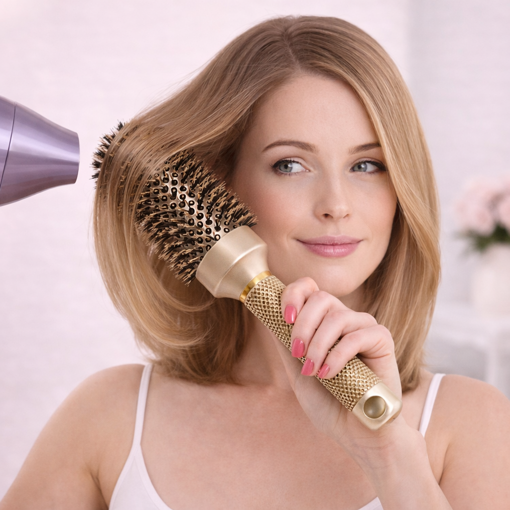No styling skills? No problem. The Signature Thermal Curler Blowout Brush™ smooths, shapes, and adds volume in one simple step — with less heat and total control for flawless blowouts at home.
